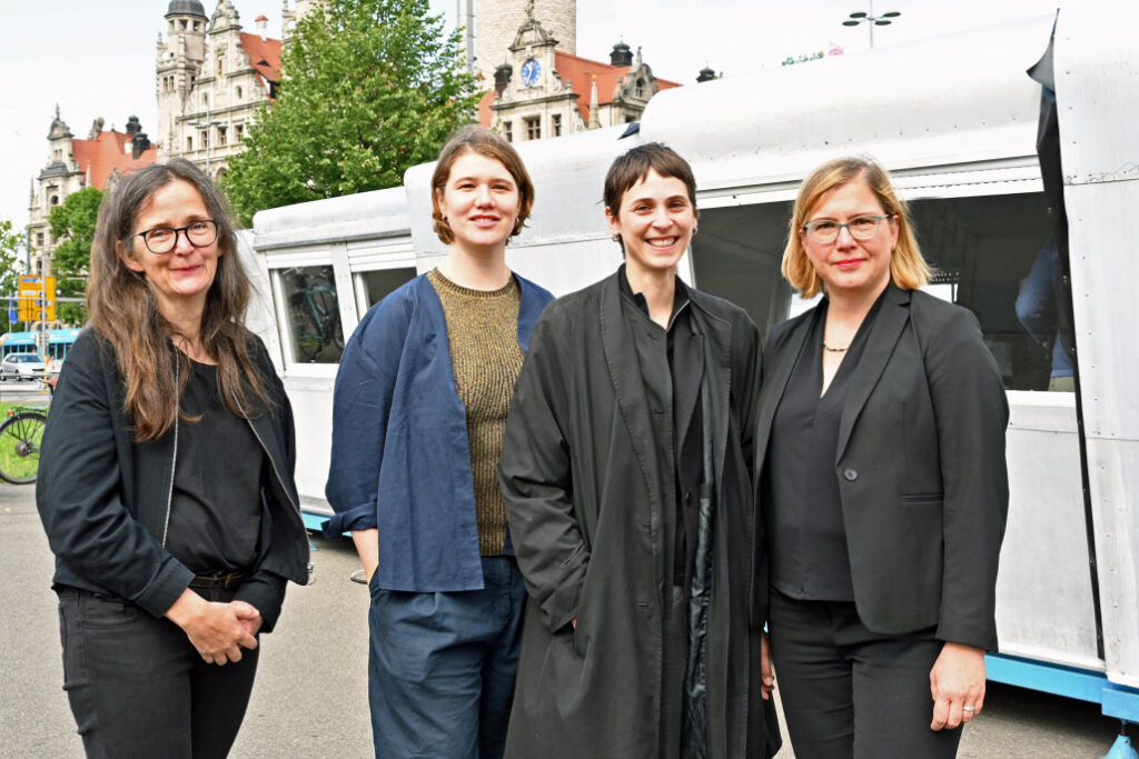 Gesine Oltmanns, Marlene Oeken und Martha Schwindling (Kuratorinnen der Ausstellung „Das Denkmal ist…) mit Skadi Jennicke, Bürgermeisterin und Beigeordnete für Kultur